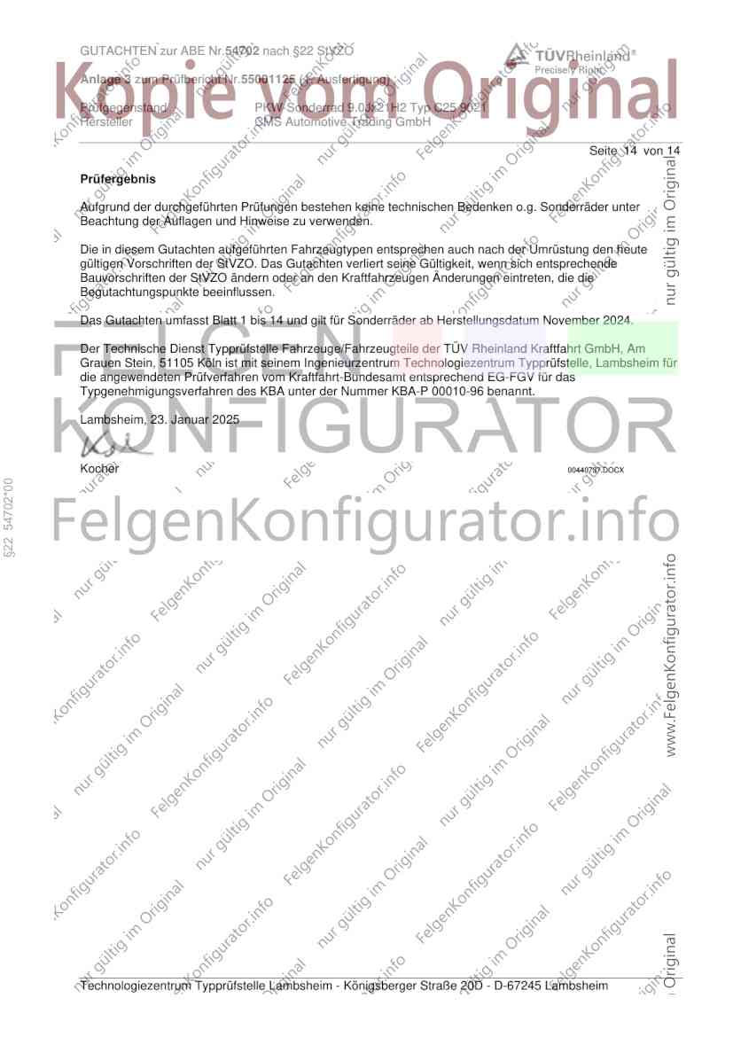 Das Gutachten umfasst Blatt 1 bis 14 und gilt für Sonderräder ab Herstellungsdatum November 2024.